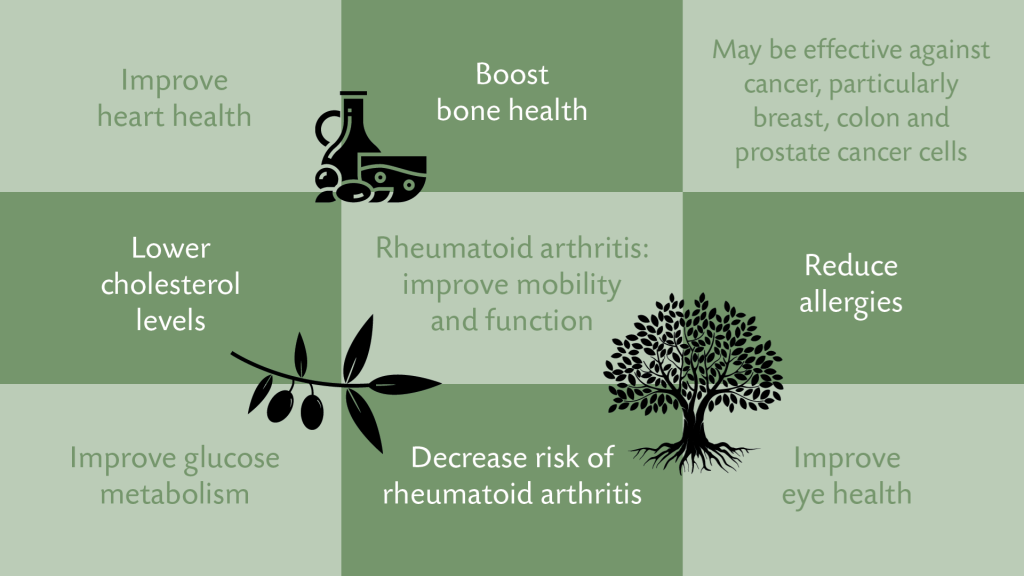 Όλα αυτά τα ευρήματα των επιστημόνων, φαίνεται να επιβεβαιώνουν τις επί αιώνες γνωστές ενδείξεις σχετικά με το ελαιόλαδο, που και αυτό περιέχει σε διαφορετικές ποσότητες, μερικά από τα συστατικά των φύλλων. Το ελαιόλαδο είναι εκείνο που προσφέρει στους μεσογειακούς λαούς χαμηλότερο ποσοστό καρδιακών παθήσεων.