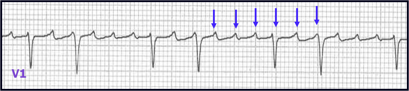 Τύπου Ι κολπικός πτερυγισμός με χαμηλή συχνότητα μέχρι 300 ανά λεπτό, με αρνητικά P στις κατώτερες απαγωγές, ο οποίος ανατάσσεται με ταχεία κολπική βηματοδότηση.