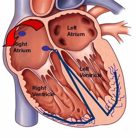 1. Του έκτοπoυ υπερευαίσθητου κέντρου, το οποίο εκπέμπει ερεθίσματα σε μεγάλη συχνότητα 200-400 το λεπτό. Εάν τα ερεθίσματα γίνουν περισσότερα επικρατεί χαώδης κατάσταση στους κόλπους και εγκαθίσταται μαρμαρυγή.
