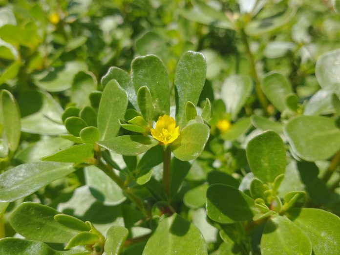 Η Portulaca oleracea ή γλιστρίδα, μπορεί να φθάσει τα 40 εκατοστά σε ύψος.