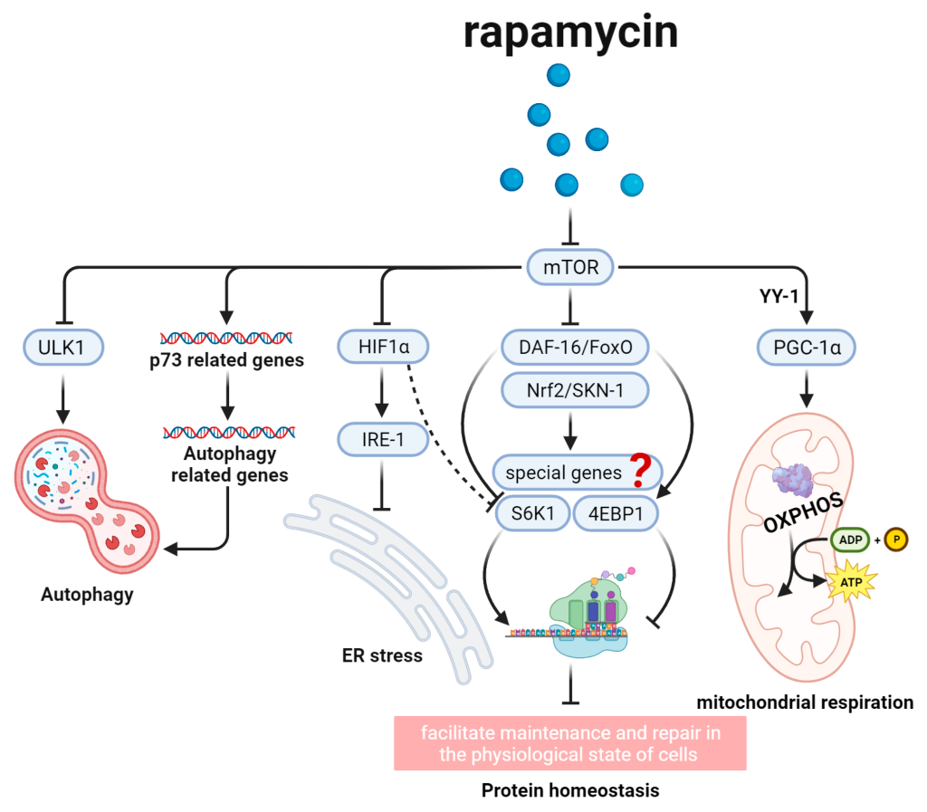 –Ραπαμυκίνη (Σιρόλιμους): Αρχικά ανακαλύφθηκε ως αντιβιοτικό και είναι ένα ισχυρό αντιγηραντικό φάρμακο που παρατείνει τη διάρκεια ζωής σε πολλά είδη αναστέλλοντας την οδό mTOR, προωθώντας την επιδιόρθωση των κυττάρων (αυτοφαγία).
