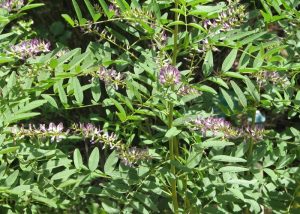 Είναι θάμνος 50-100 εκατοστά με μεγάλες ρίζες 1-2 μέτρα, κυλινδρικές, διακλαδισμένες, σαρκώδεις. Βλαστοί ραβδωτοί, χνουδωτοί, φύλλα περιττόληκτα, με 9-17 ζεύγη φυλλαρίων. Φυλλάρια ελλειπτικά, προμήκη, συχνά κολλώδη. Άνθη 8-12 χιλ., λευκοβιολετιά, πεταλουδόμορφα, σε πολυανθείς βότρεις. Χέδρωπες μακρουλοί, πεπλατυσμένοι.