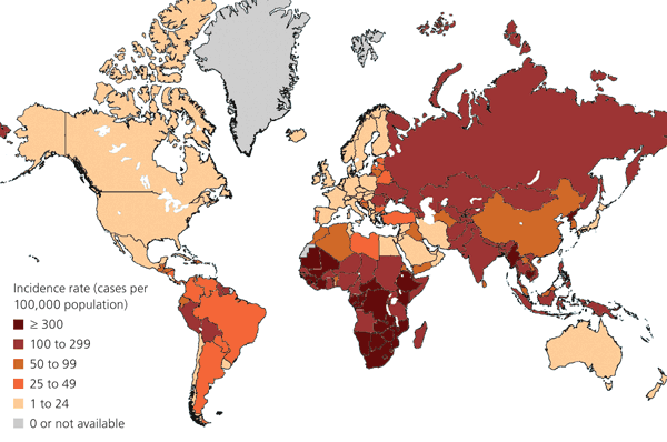 Ο κίνδυνος μετάδοσης της φυματίωσης είναι υψηλότερος για τους ανθρώπους που ζουν μέσα ή ταξιδεύουν σε χώρες που έχουν υψηλά ποσοστά φυματίωσης και φυματίωση ανθεκτική στα φάρμακα: Υπο-Σαχάρια Αφρική, Ινδία, Κίνα, Ρωσία, Πακιστάν