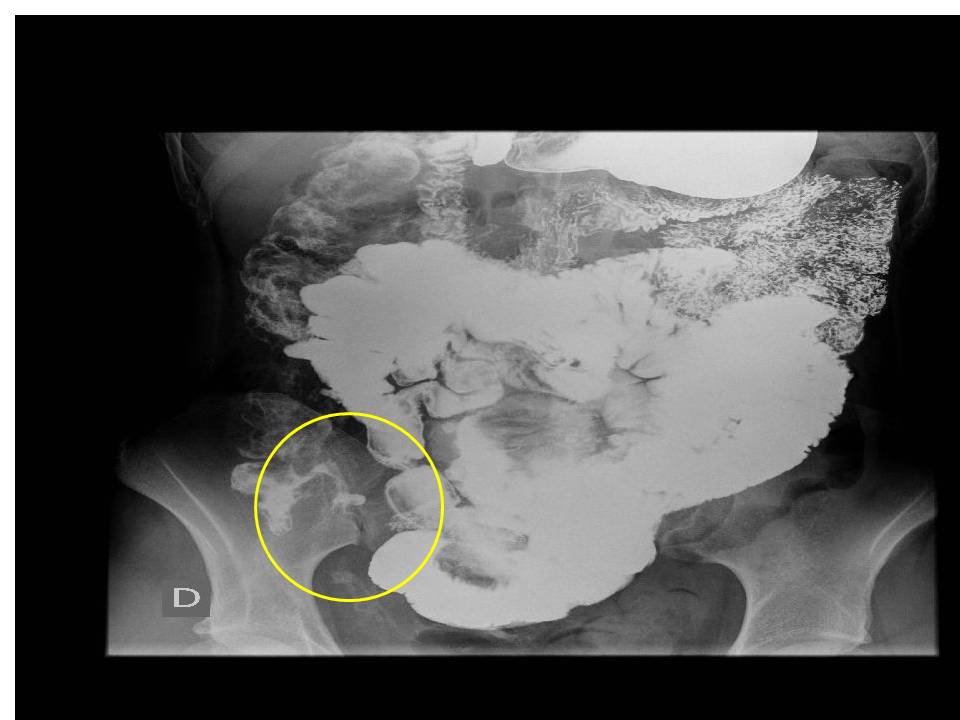γ) Παλίνδρομη πλήρωση του τελικού ειλεού: Όταν υπάρχει υπόνοια παθήσεως του τελικού ειλεού μπορεί να γίνει βαριούχος υποκλυσμός και αφού γεμίσει το τυφλό, με εξάσκηση κατάλληλης πίεσης τοπικά το βάριο μπορεί να διέλθει μέσω της ειλεοτυφλικής βαλβίδας και να σκιαγραφήσει παλινδρόμως τον τελικό ειλεό.