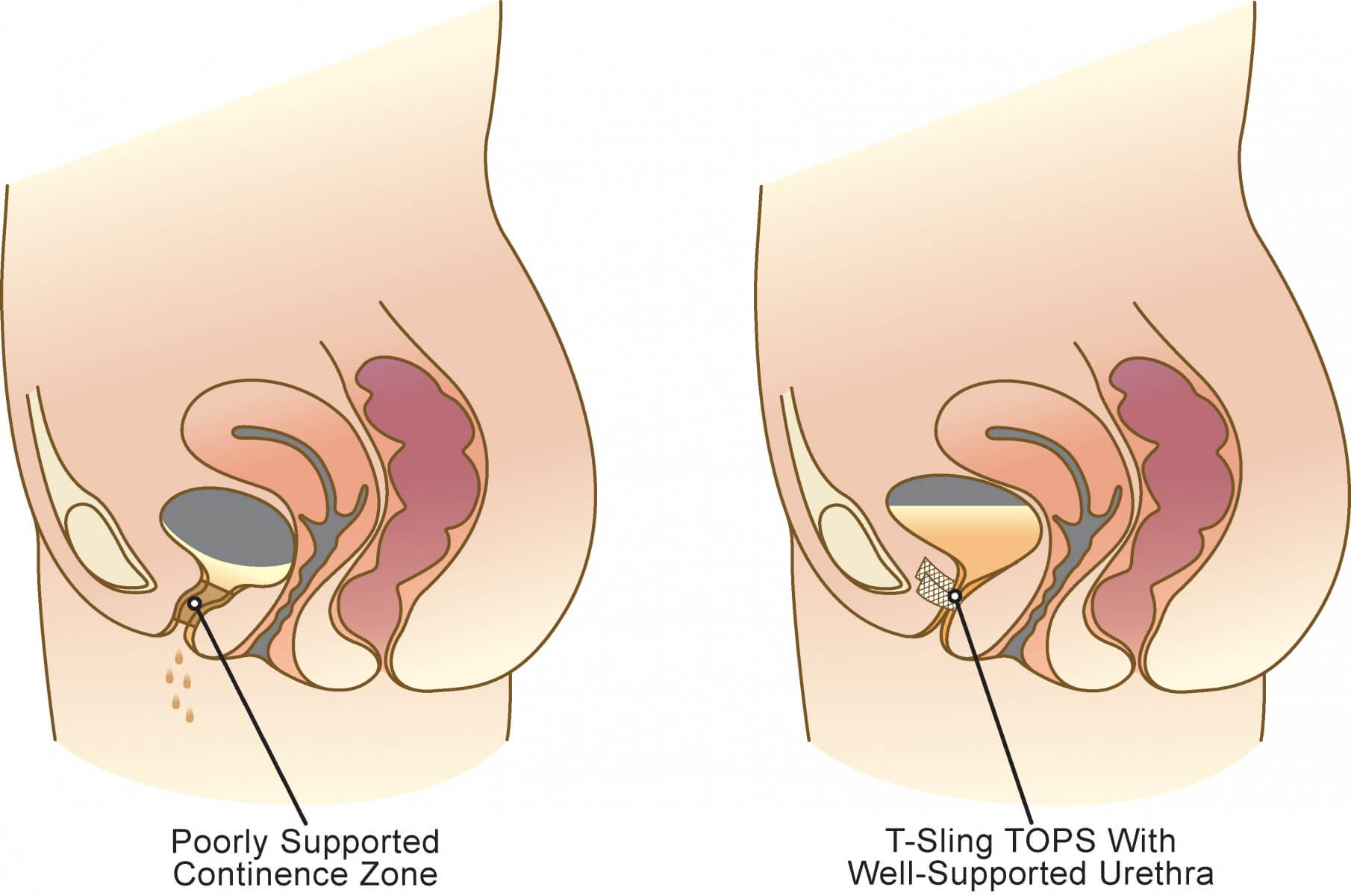 Η απώλεια ούρων μειώνεται στις περισσότερες γυναίκες με αυτή την επέμβαση. Μερικές γυναίκες μπορεί να συνεχίσουν να έχουν ακόμα κάποια διαρροή, από άλλα προβλήματα που προκαλούν ακράτεια. Με τον καιρό, συνήθως, η ακράτεια διορθώνεται και σε αυτό θα βοηθήσουν η επανεκπαίδευση της ουροδόχου κύστης και ασκήσεις Kegel και κάποια φάρμακα.