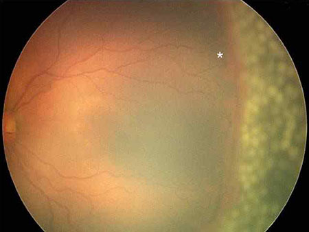 Η ανάπτυξη της διαχωριστικής γραμμής μεταξύ της περιοχής του αμφιβληστροειδούς που έχει αγγείωση και αυτής που δεν έχει αποτελεί το πρώτο βυθοσκοπικό εύρημα