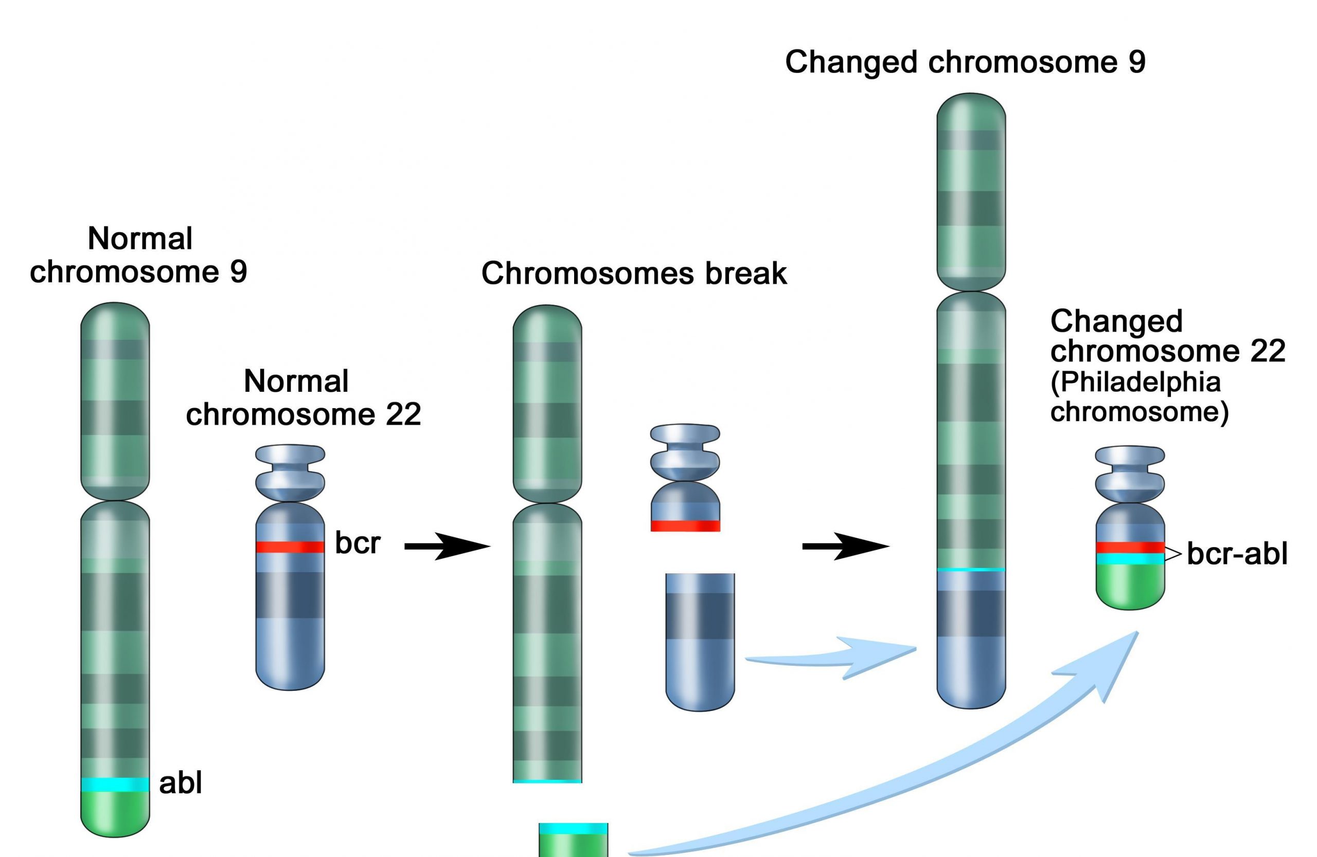 Τα κυτταρογενετικά χαρακτηριστικά: Έχουν μεγάλη προγνωστική σημασία. 10-20% των περιπτώσεων ΟΛΛ είναι Ph θετικοί (5% των παιδιών και 25% των ενηλίκων) και η πιθανότητα της θετικότητας αυξάνει με την ηλικία. Η πιθανότητα για πλήρη ύφεση είναι μικρότερη σε ασθενείς που είναι Ph θετικοί και η πιθανότητες να παραμείνουν σε πλήρη ύφεση είναι χαμηλότερες. 25-30% των ενηλίκων με ΟΛΛ είναι BCR-ABL θετικοί. Έτσι πάνω από 10% των περιπτώσεων που είναι Ph αρνητικοί ή φυσιολογικοί ή δεν έχουν κάνει ανοσοϊστοχημεία θα έχουν την BCR-ABL αναδιάταξη. Το Ph χρωμόσωμα προέρχεται από την μετάθεση (t(9;22) (q34;q11), το οποίο εμπλέκει την μετακίνηση του περισσότερου μέρους του ABL πρωτοογκογονιδίου από το παρακείμενο χρωμόσωμα 9 στην περιοχή 5′ του γονιδίου BCR στο χρωμόσωμα 22. Το σημείο σπασίματος στο χρωμόσωμα 9 ποικίλλει και συμβαίνει οπουδήποτε σε μια περιοχή 200 kilobase ή και περισσότερων, συνήθως στο εσώνιο 5′ του εξωνίου 2. Σε αντίθεση, τα σημεία σπασίματος στο BCR γονίδιο στο χρωμόσωμα 22 συμβαίνει σε 2 περιοχές, η μία ονομάζεται μείζων περιοχή του συμπλέγματος καμπής-major break point cluster region (M-bcr) και η άλλη ελάσσον περιοχή του συμπλέγματος καμπής-major break point cluster region (m-bcr). Οι αναδιατάξεις στην M-bcr μεταγράφονται σε ένα χιμαιρικό messenger-RNA το οποίο παράγει μια υβριδική 210 kilodalton πρωτεϊνη (p210Bcr-Abl), που σπάει με την έκφραση m-bcr σε ένα χιμαιρικό messenger-RNA το οποίο παράγει μια υβριδική μικρότερη 190 kilodalton πρωτεϊνη (p190Bcr-Abl). Στην ΧΜΛ όλα τα σπασίματα χαρτογραφούνται στο M-bcr το οποίο ορίζεται στο CML-Ph χρωμόσωμα, ενώ στην ΟΛΛ, τα σπασίματα βρίσκονται και M-bcr και στο m-bcr. Τα σπασίματα στο m-bcr ορίζονται στo χρωμόσωμα Ph της ΟΛΛ. Η συχνότητα των δύο τύπων σπασίματος φαίνεται ότι εμφανίζεαι με την ίδια συχνότητα. Ph θετική ΟΛΛ με της ΧΜΛ τον τύπο BCR-ABL μετάθεσης δεν είναι απλά μια λεμφοειδής κρίση στη ΧΜΛ. Αυτοί οι ασθενείς σπάνια έχουν μια μακρά προδιαγνωστική ιστορία, δεν έχουν σπληνομεγαλία και όταν θεραπεύονται με την συμβατική θεραπεία η νόσος τους δεν μπαίνει σε μια χρόνια Ph θετική φάση, αλλά μπαίνει σε μια Ph αρνητική πλήρη ύφεση. Το ελεύθερο νόσου διαστήματος είναι μικρότερο σε όσους έχουν το σπάσιμο του τύπου της ΟΜΛ. Η πρόγνωση είναι χειρότερη για ασθενείς με Ph αρνητικό και BCR-ABL θετικό. Χρησιμοποιείται imatinib mesylate σε ασθενείς με υποτροπή ΟΛΛ που έχουν Ph χρωμόσωμα θετικό με πλήρεις ανταποκρίσεις σε πολλές περιπτώσεις, αλλά είναι μικρής διάρκειας. Άλλη γονιδιακή μετάθεση στην ΟΛΛ είναι η σύντηξη του ETV6 γονιδίου στο χρωμόσωμα 12, σκέλος p13 και του CBFA γονιδίου στο χρωμόσωμα 21, σκέλος q22 σε 25% των προδρόμων Β-κυττάρων σε ΟΛΛ σε παιδιά. Αυτή η αναδιάταξη είναι το αποτέλεσμα μιας κρυφής μετάθεσης t(12;21)(p13;q22) που δεν ανιχνεύεται με την κυτταρογενετική ανάλυση, αλλά μόνο με την PCR. Το ETV6-CBFA γονίδιο σύντηξης εμφανίζεται σε ηλικία 2-9 ετών με ανοσοφαινότυπο (CD1-θετικό, CD19-θετικό, HLA-DR-θετικό, CD2-αρνητικό και CD33-αρνητικό). Οι μισές από τις περιπτώσεις είναι φυσιολογικού κινδύνου και οι άλλες μισές υψηλού κινδύνου. Όμως το ETV6-CBFA γονίδιο σύντηξης συνδέεται με καλή πρόγνωση.