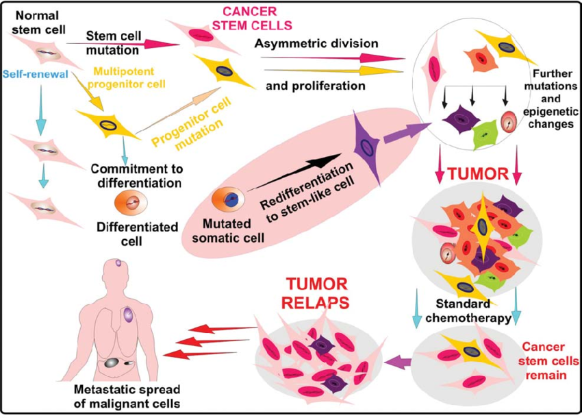 Τα καρκινικά βλαστοκύτταρα διαδραματίζουν κεντρικό ρόλο στην ανάπτυξη, εξέλιξη και επανεμφάνιση των όγκων μετά τη θεραπεία. Τα καρκινικά βλαστοκύτταρα έχουν απεριόριστο δυναμικό κυτταρικής διαίρεσης.