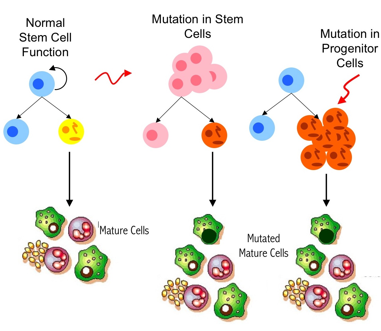 Η μετάλλαξη εξειδικευμένων σε βλαστικά κύτταρα κατά τη διάρκεια της ανάπτυξης υποθέτει ότι αυτοί οι αναπτυσσόμενοι πληθυσμοί  μεταλλάσσονται και στη συνέχεια αναπαράγονται, έτσι ώστε η μετάλλαξη να μοιράζεται σε πολλούς απογόνους. Αυτά τα θυγατρικά κύτταρα είναι πολύ πιο κοντά στο να γίνουν όγκοι και ο αριθμός τους αυξάνει την πιθανότητα καρκινικής μετάλλαξης.